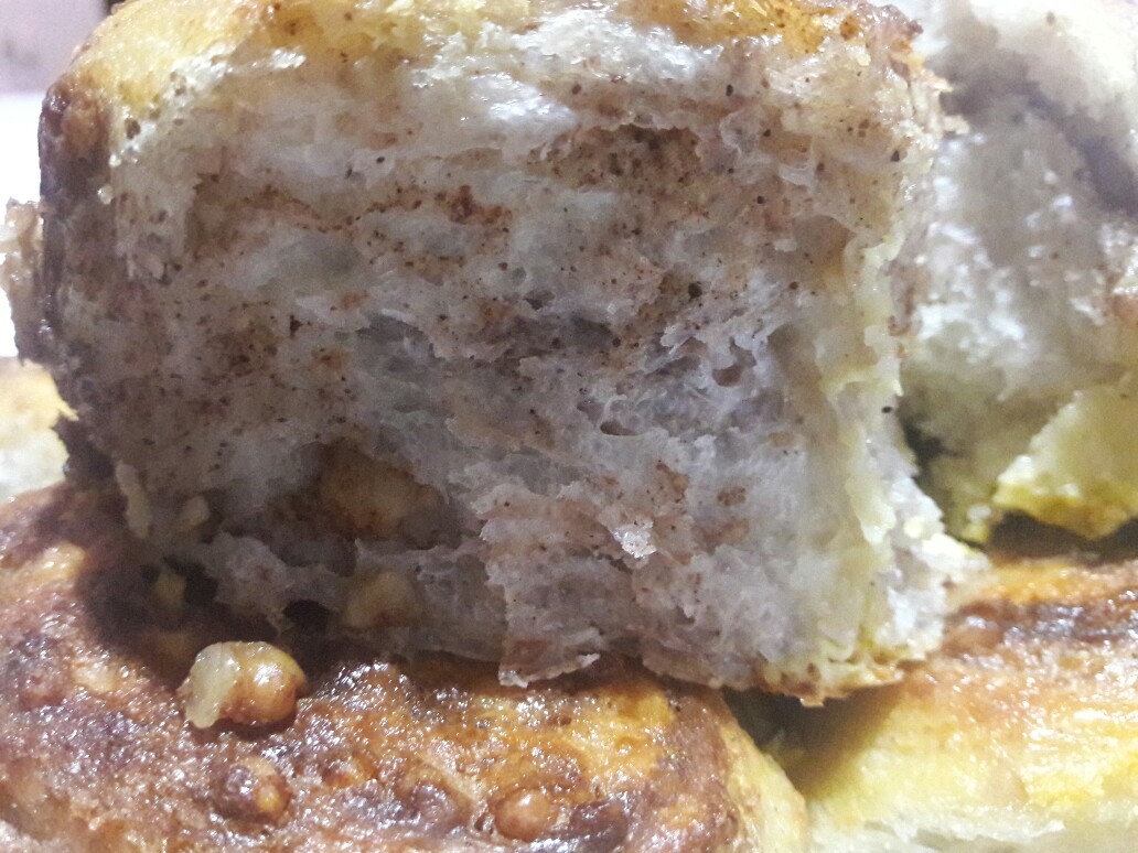 Hamur mayalandıktan sonra masa üzerine elinize bolca yağ alarak hamurunuzu açabilirsiniz. Çok ince olmayacak şekilde açabildiğiniz kadar açın. Yaklaşık bir çay tabağı kalınlığı gibi düşünebilirsiniz... Açarken yuvarlak açmayınız. Tepsi gibi dikdörtgen uzatırsanız bütün parçalar eşit olur. Açma işlemi bittikten sonra hazırladığımız cevizli karşımı hamurun her tarafında eşit olacak şekilde üzerine serpiyoruz.